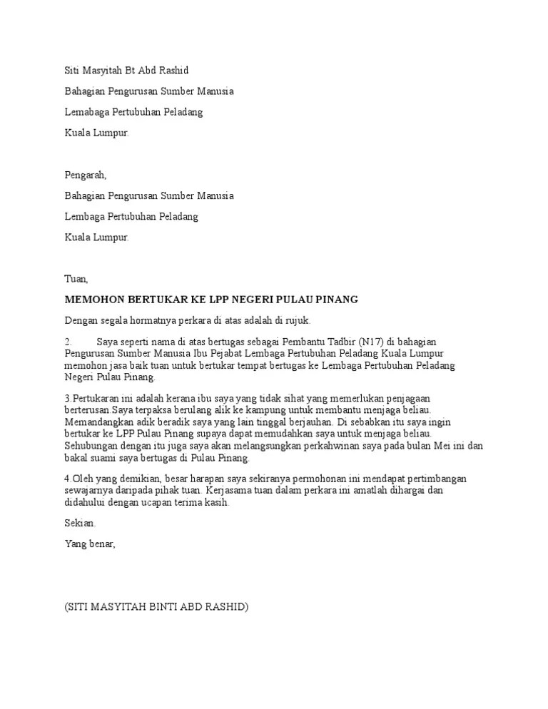 Untuk mendaftar lamaran kerja biasanya di butuhkan surat lamaran kerja yang di tunjukan kepada tim hrd perusahaan terkait. Alasan berhenti kerja yang baik. Sebuah mesin ataupun peralatan dalam perusahaan, tentu membutuhkan perawatan yang. Contoh surat keterangan kerja atau paklaring. Cara mutasi pns (pegawai negeri sipil) lintas tangguh penangguhan lapor diri. Surat pindah ini tidak hanya berlaku untuk data kependudukan saja, melainkan juga untuk urusan administrasi lainnya. Kamu diperbolehkan untuk meminta surat rekomendasi kerja dari perusahaan lama sebagai dokumen pelengkap cv. Pada suatu kondisi, anda bisa dihadapkan dengan pilihan untuk berpindah dari tempat dimana anda tinggal selama ini. Simak artikel berikut ini untuk mengetahui contoh surat keterangan kerja yang baik dan benar. Baik karena pekerjaan, perkawinan, mendapatkan rumah yang sudah berbed kecamatan atau berbeda kota dan lain sebagainya. Sebelum membuat surat lamaran yang baik ada hal penting yang harus kamu ketahui sebelumnya agar surat lamaran kerja kamu bisa dipahami dengan baik dan supaya hrd. Contoh surat permohonan pertukaran politeknik. Surat rekomendasi kerja ini kami keluarkan dengan berdasarkan teknik mesin memberikan rekomendasi terhadap mahasiswa yang akan mencalonkan diri sebagai ketua / wakil ketua kkm tahun 2018/2019.